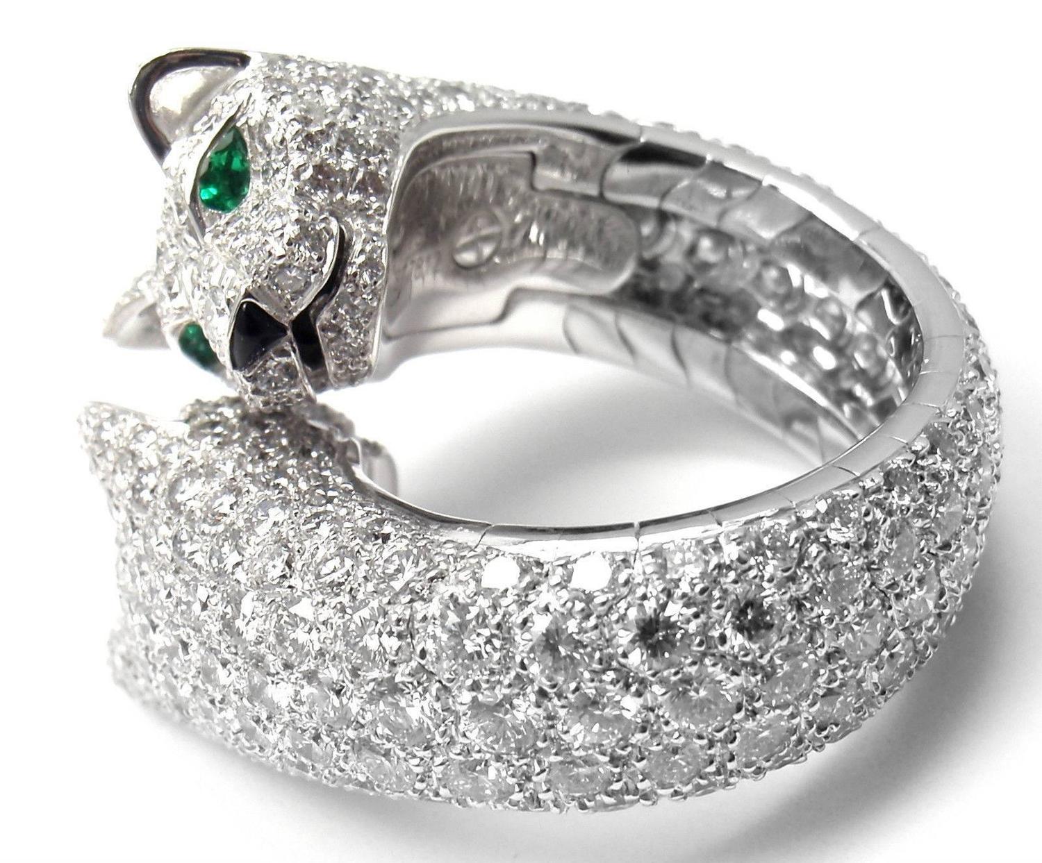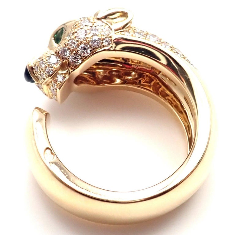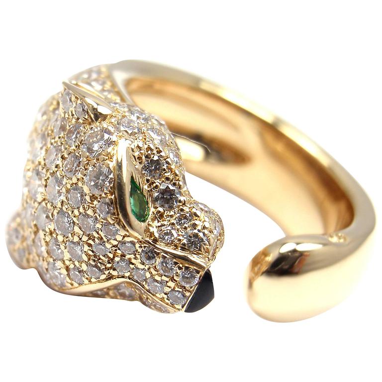 Cartier Panther Ring, Diamonds, Emeralds and Onyx For Sale at 1stdibs from a.1stdibscdn.com Made in france with french hallmarks. Cartier jewellery is defined by its innovative designs and talented craftsmanship where tradition and modernity hold hands, as seen in this ring. Every day new 3d models from all over the world. The eye of the panthere feature pear cut emeralds with a total weight of approximately 0.06ct with a deep. Highly polished dome with black enamel leopard marks on a diagonal. Diamond, onyx and emerald panther ring. Cartier leopard ring related newsipl 2018, srh vs mi preview: Dainty and elegant, yet very substantial.
